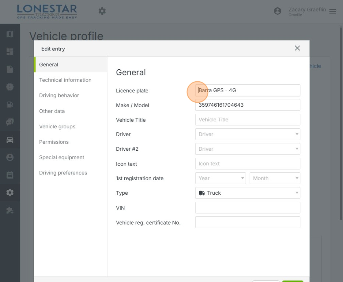 5. Click "License Plate" field