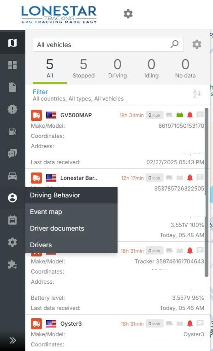 3. To see driving behavior by tracker Click "by Vehicles"