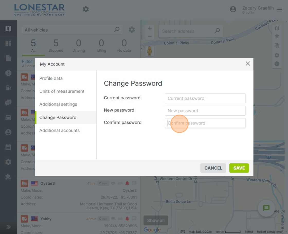 7. Click the "Confirm password" field, and enter "New" password again.