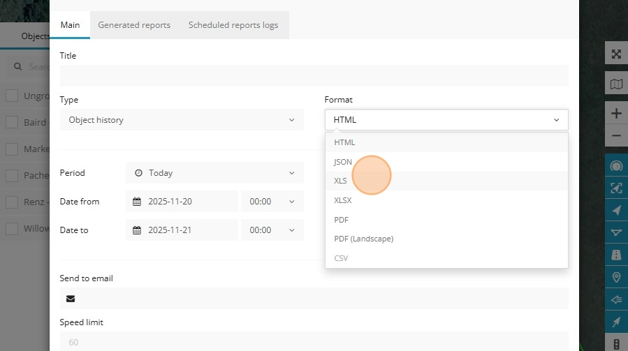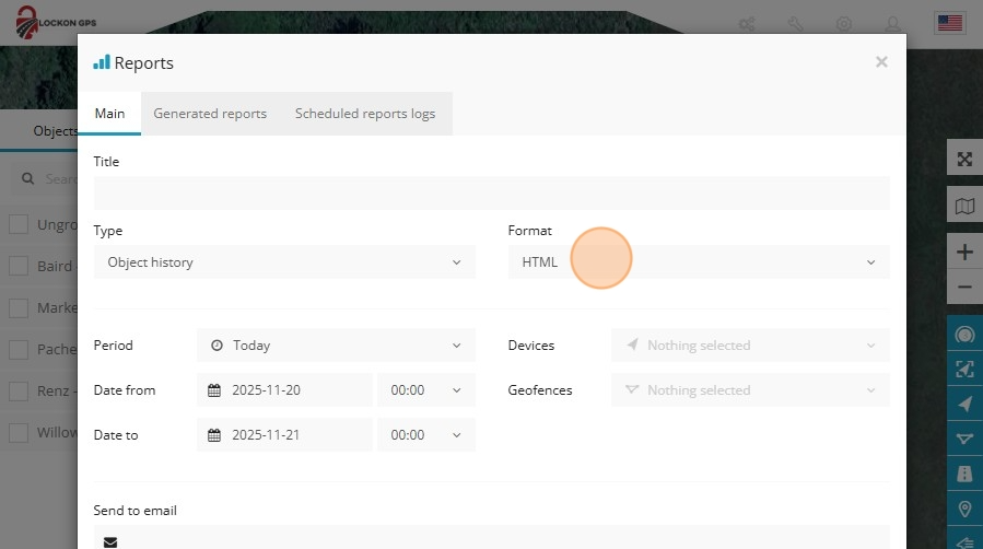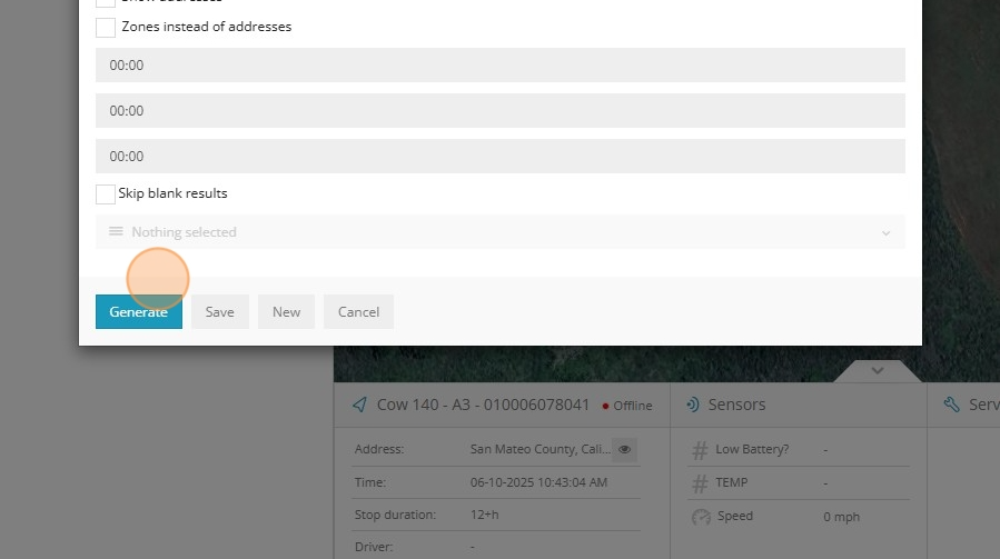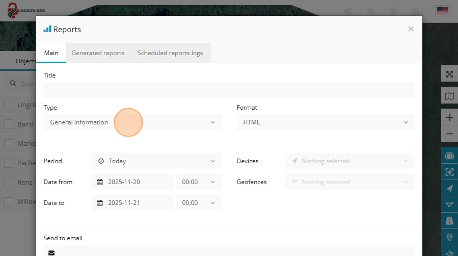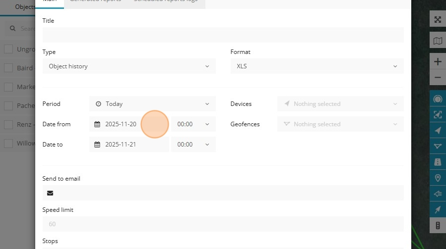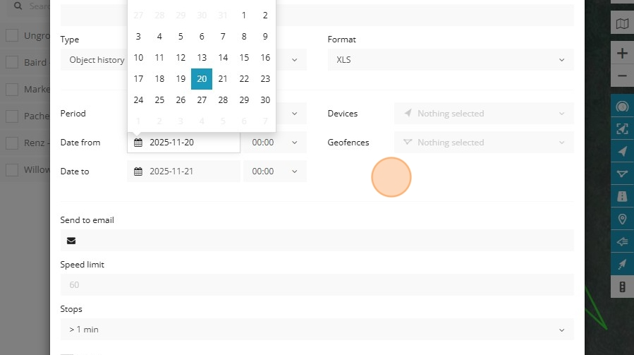 9. Click "Period Today Date from Date to Devices Nothing selected Geofences Nothing selected"